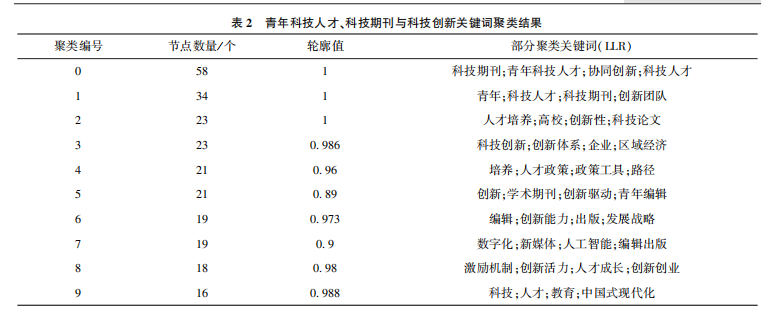 2.2青年科技人才、科技期刊与科技创新关键词聚类分析