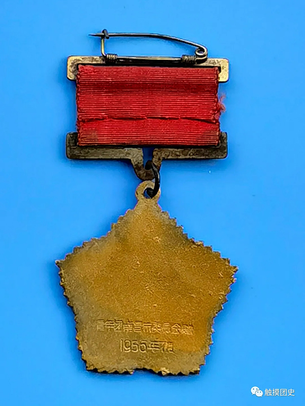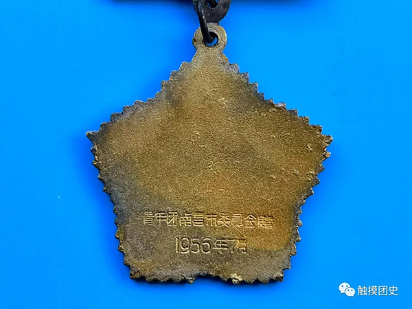 徽章背面刻有“青年团南昌市委员会赠”字样和颁发时间“1956年7月”。这次表彰活动,或许是特意选在“七一”党的生日期间进行的。