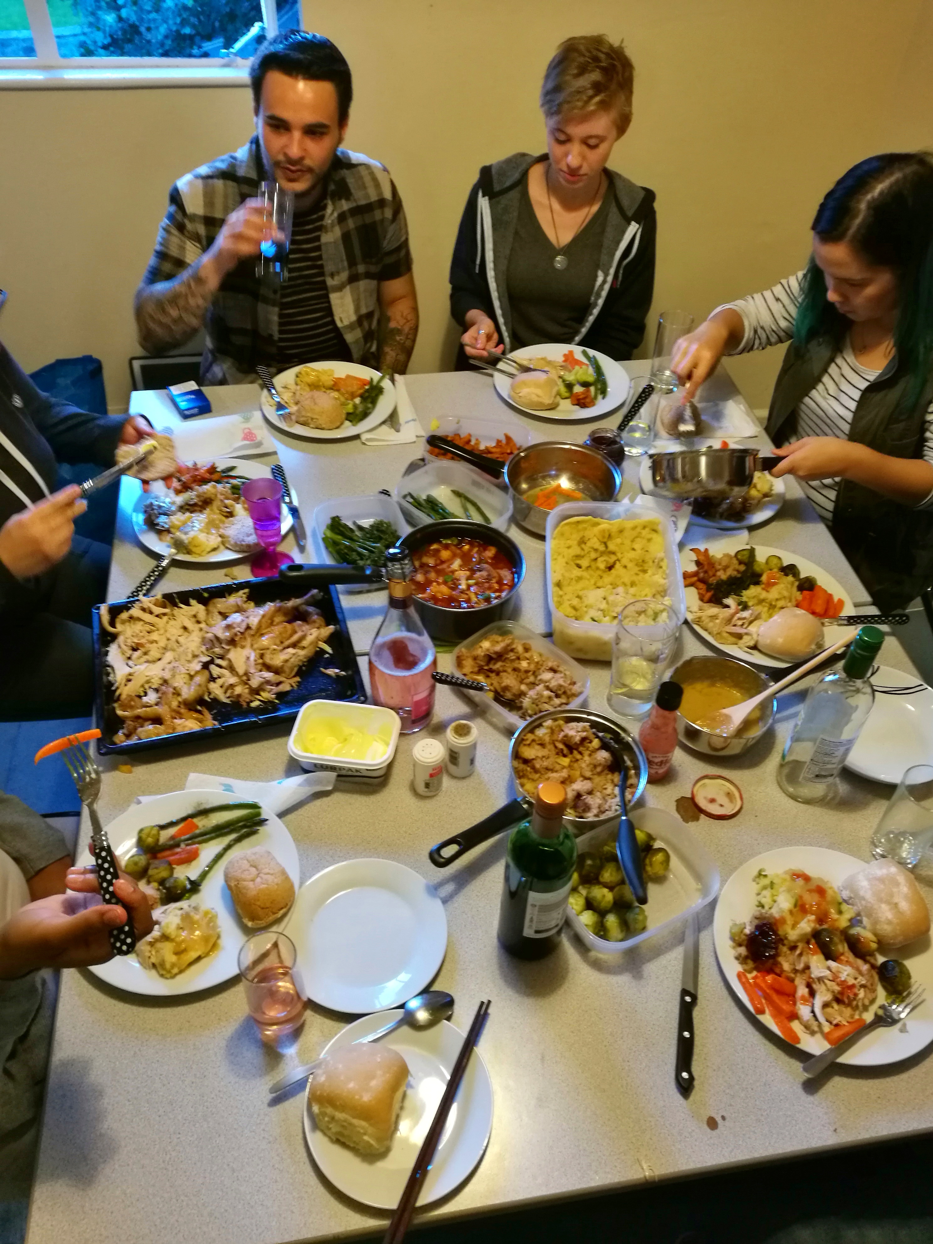 我厨艺还不错,每次party我做的中国食物总能成为抢手货,平时我在厨房无论做什么,舍友们都会凑过来问一问:“Suki你又在做什么好吃的呀?”。大盘鸡、五香牛肉、重庆火锅都被我搬上过餐桌,大家每一次都赞不绝口,夸赞中国菜实在太amazing。我还跟着他们学会了使用烤箱,烤面包烤乳酪,做墨西哥玉米卷饼。谈“吃”实在是各国人民的共同爱好,给我们增加了很多乐趣,也拉近了不少距离。